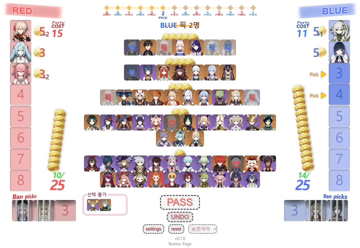 캐릭터 엔트리 픽업 선택 후 해당 캐릭터의 코스트 표시 영역에서 마우스 좌클릭/우클릭 또는 휠 UP/DOWN으로 추가 코스트를 조정할 수 있습니다. 마우스 휠 버튼을 클릭하면 해당 캐릭터의 추가 코스트가 0으로 초기화 됩니다.